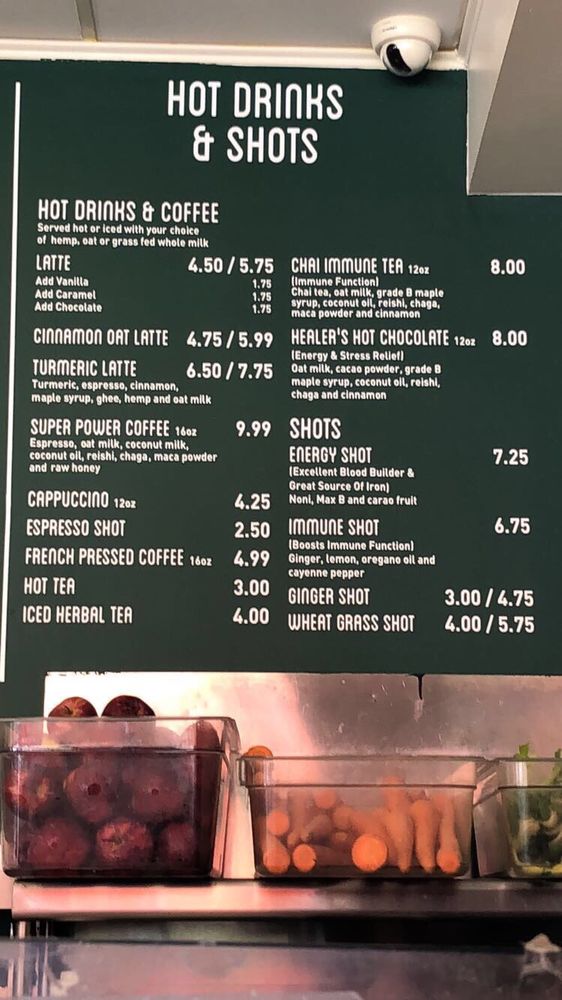 Oat milk, pineapple, spinach, parsley, mint, lemon, and raw honey